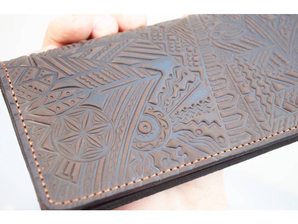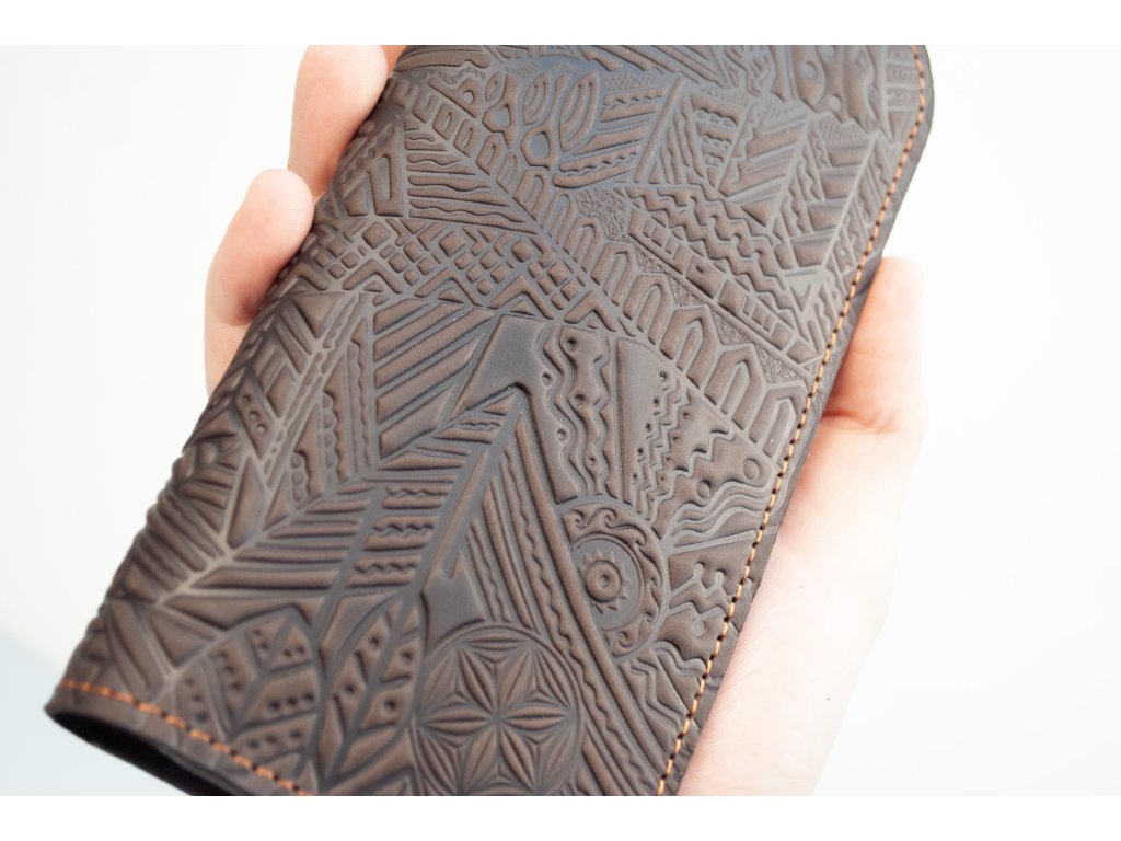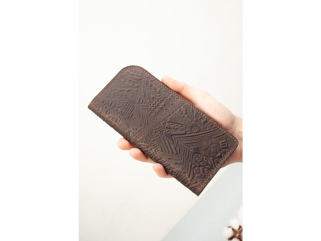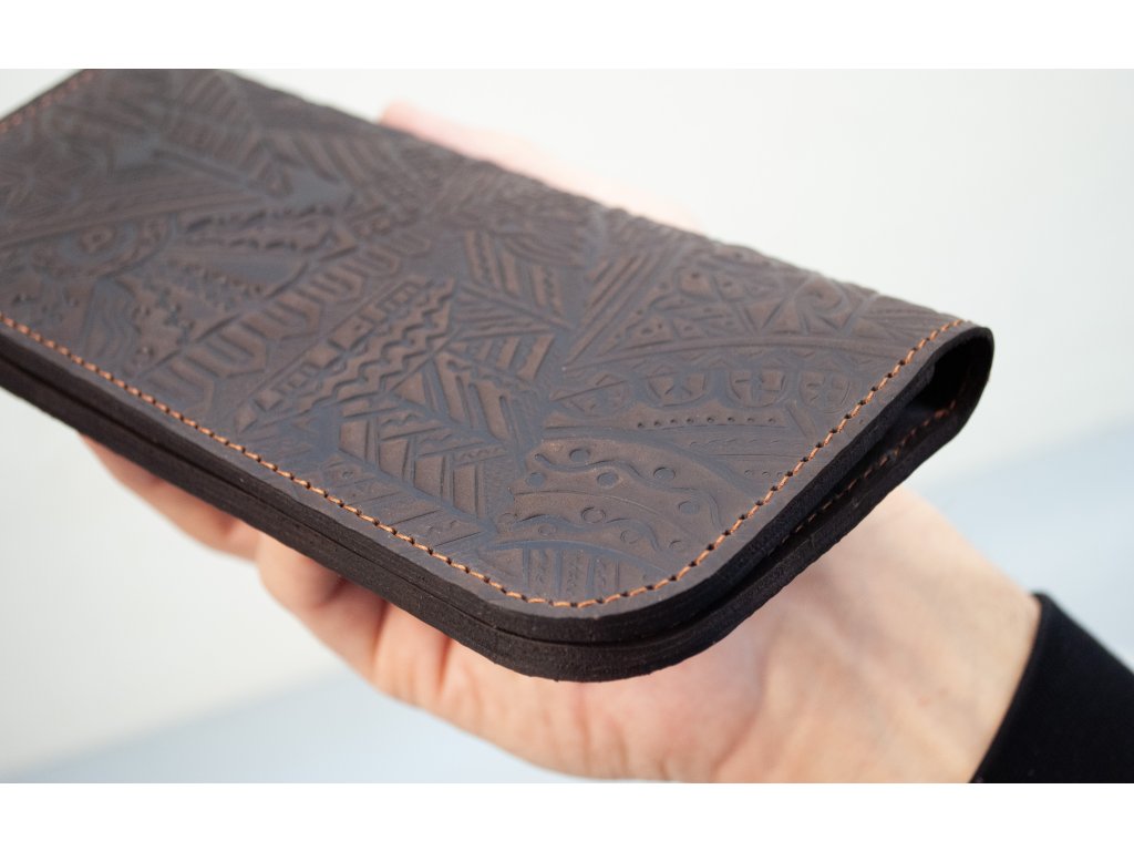 Peněženka-longer "Shpak_M3" s magnety a reliéfem "KARPATY". Kůže "Crazy Horse" tm.hnědá