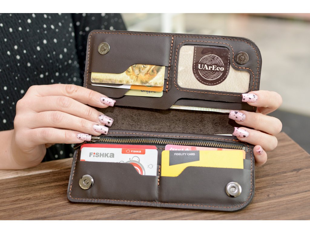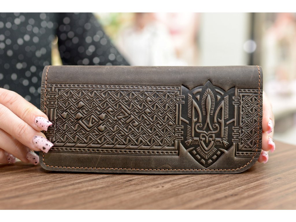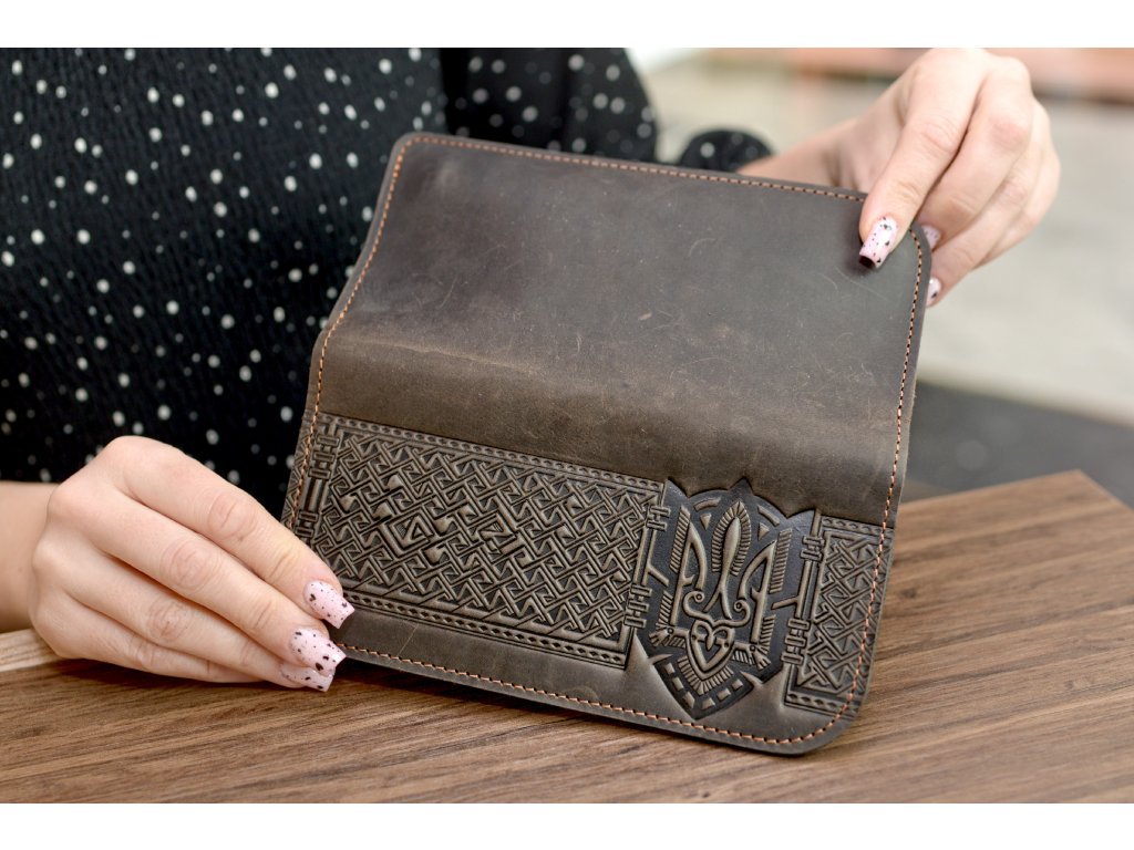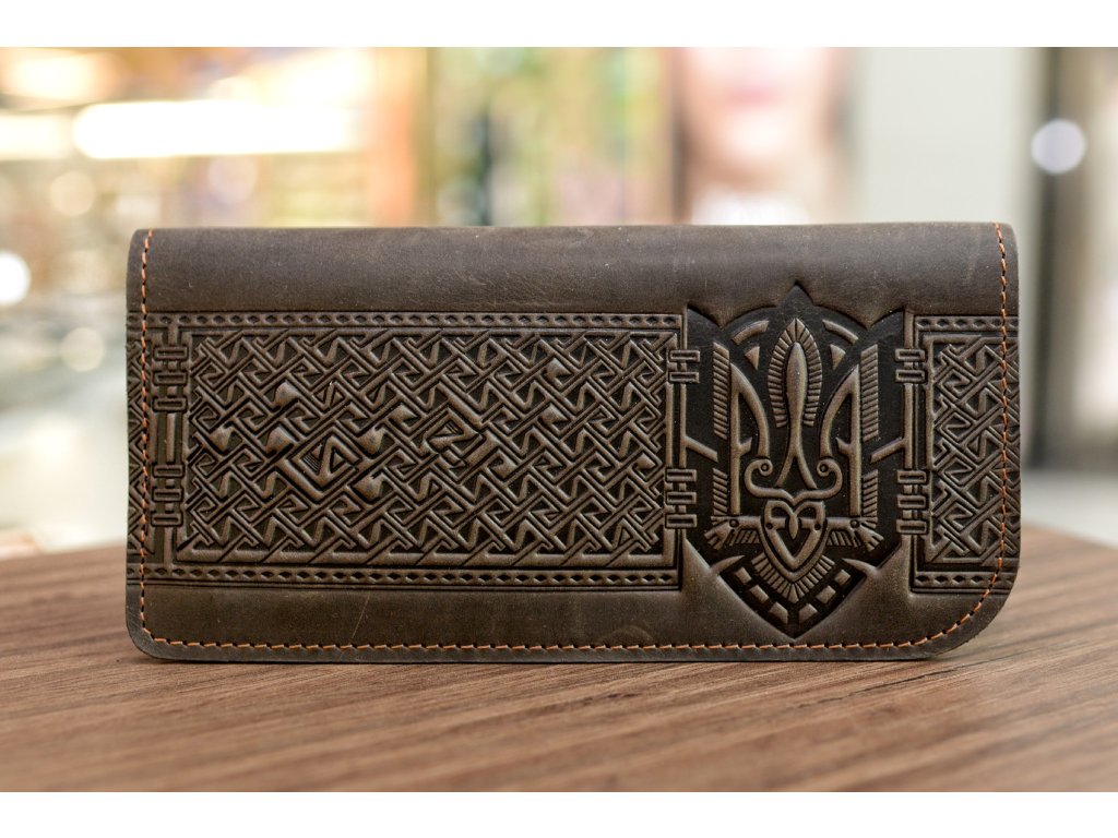 Peněženka-longer "Shpak_M3" s magnety a reliéfem "Trojzubec-výšivka". Kůže "Crazy Horse" tm.hnědá