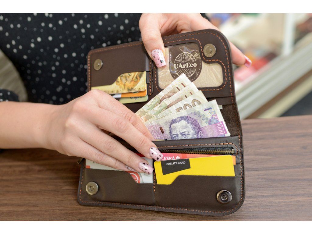 Promyšlené rozvržení kapes umožňuje pohodlně uspořádat bankovky, karty a mince. - Design: