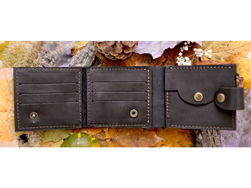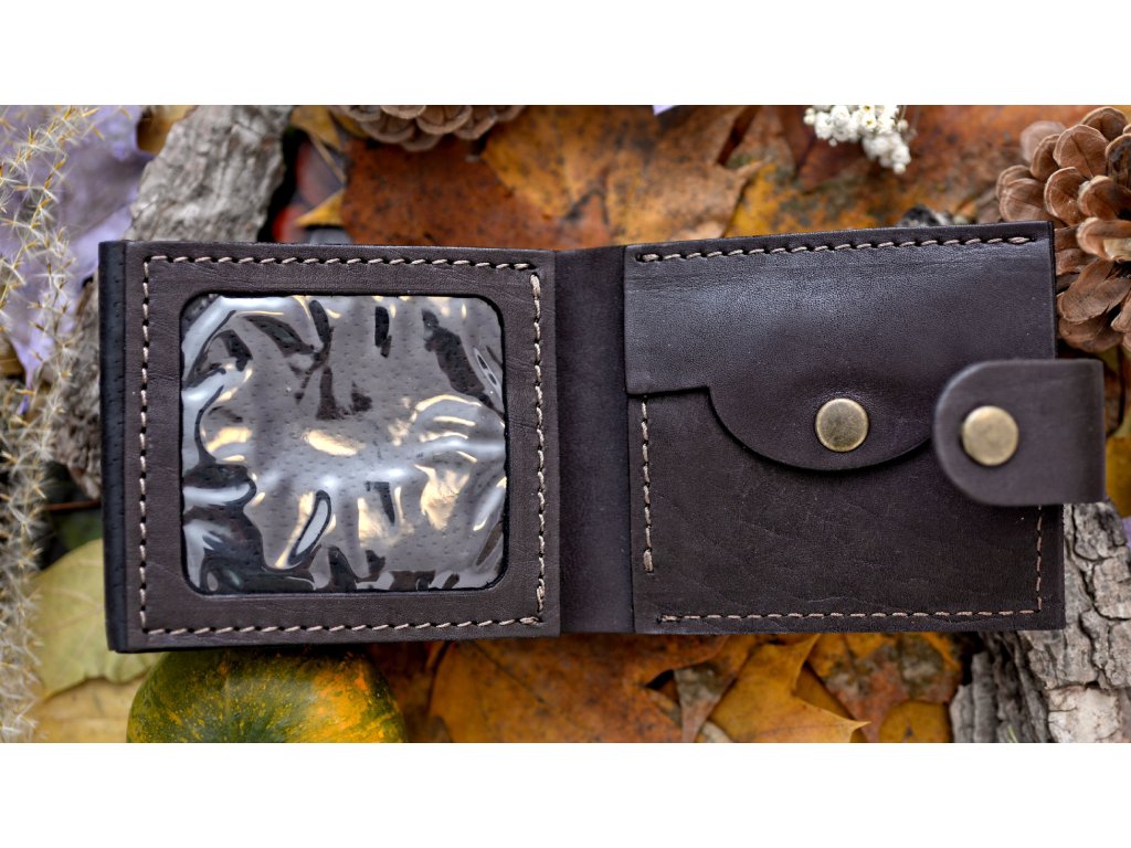 Peněženka s flipem a okénkem "Zaporozi". Kůže "Krast" Tmavě hnědá