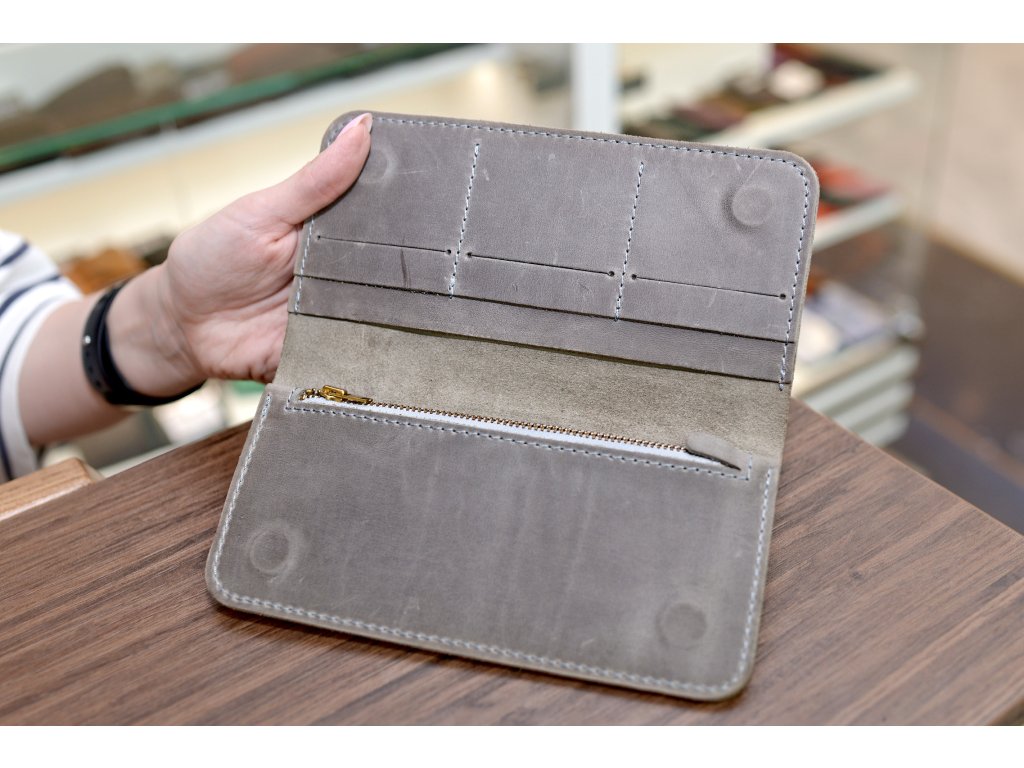 - Při výrobě vnitřku peněženky může být použit lesklý nebo matný typ kůže, což závisí na dostupnosti.