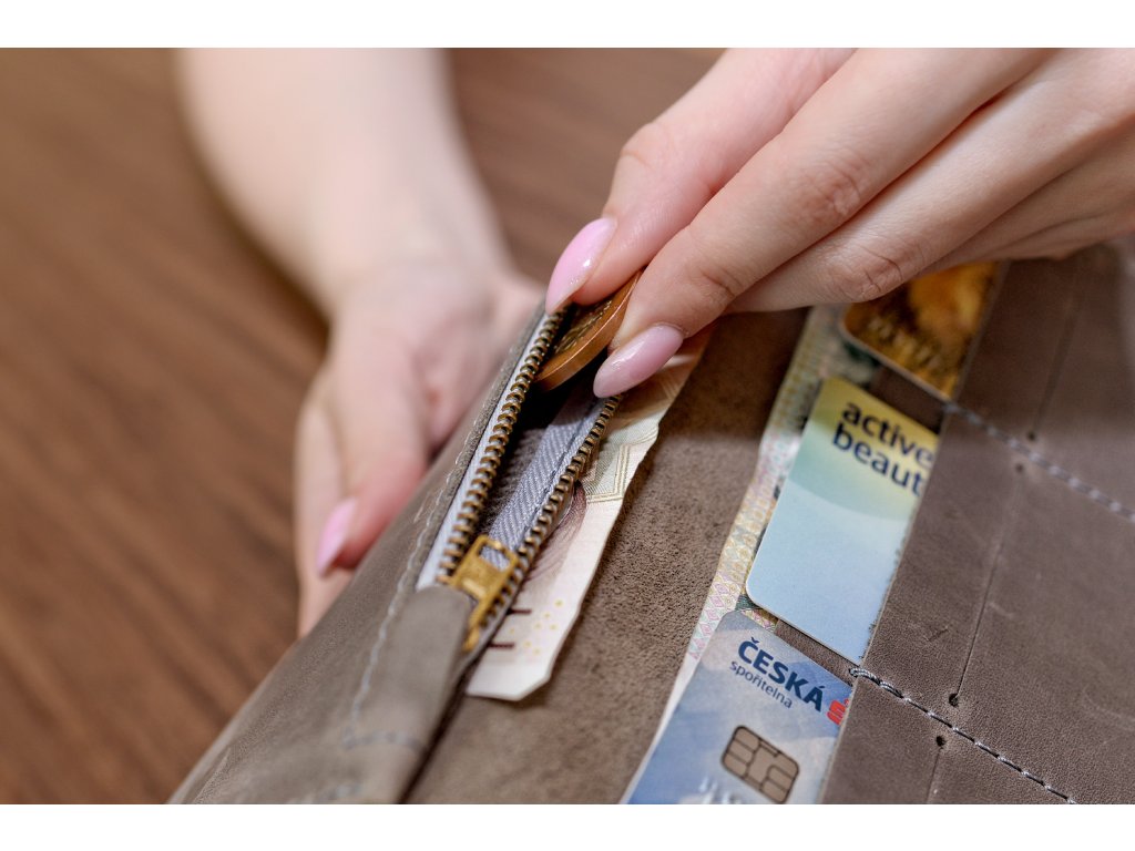 Promyšlené rozvržení kapes umožňuje pohodlně uspořádat bankovky, karty a mince. - Design: