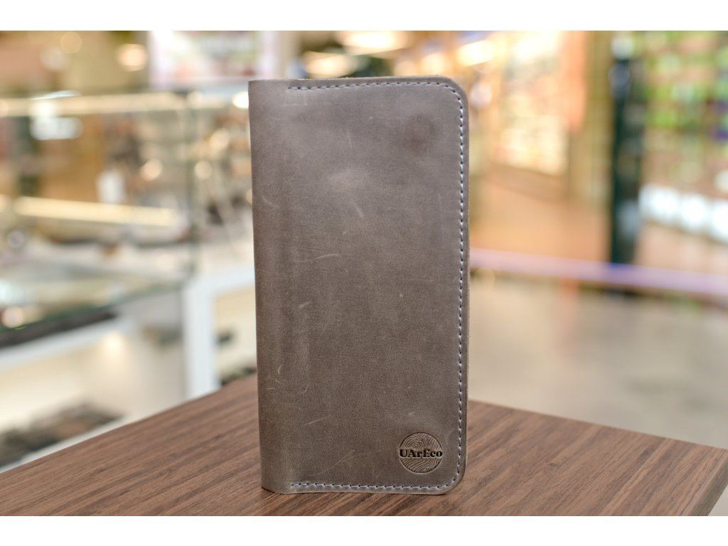 Peněženka "Ultra na magnetech". Kůže "Crazy Horse" šedá