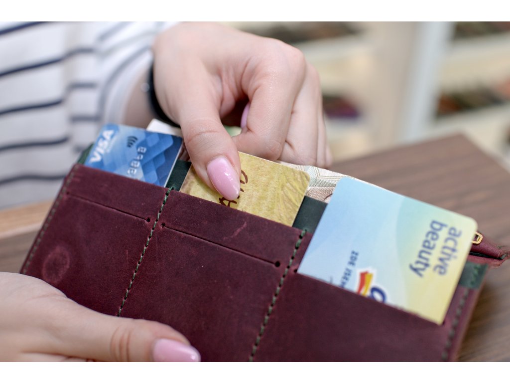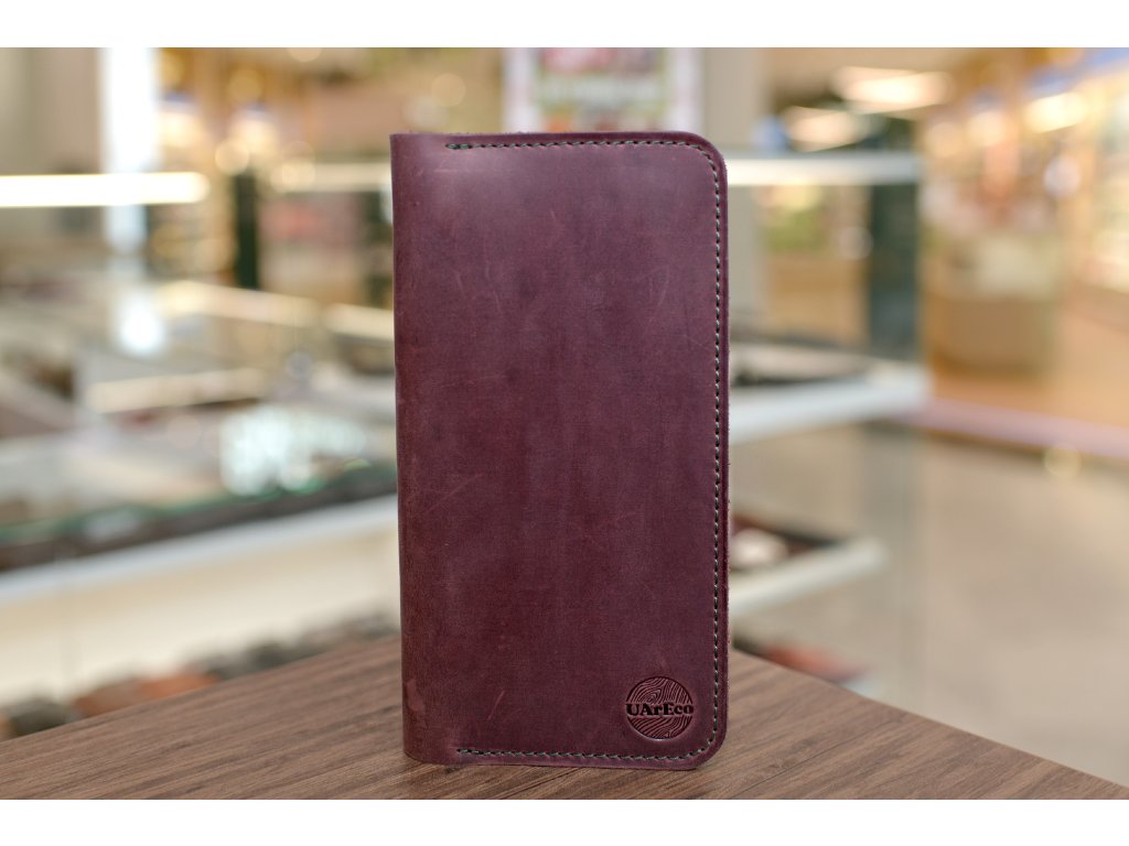Peněženka "Ultra na magnetech". Kůže "Crazy Horse" vínová/zelená