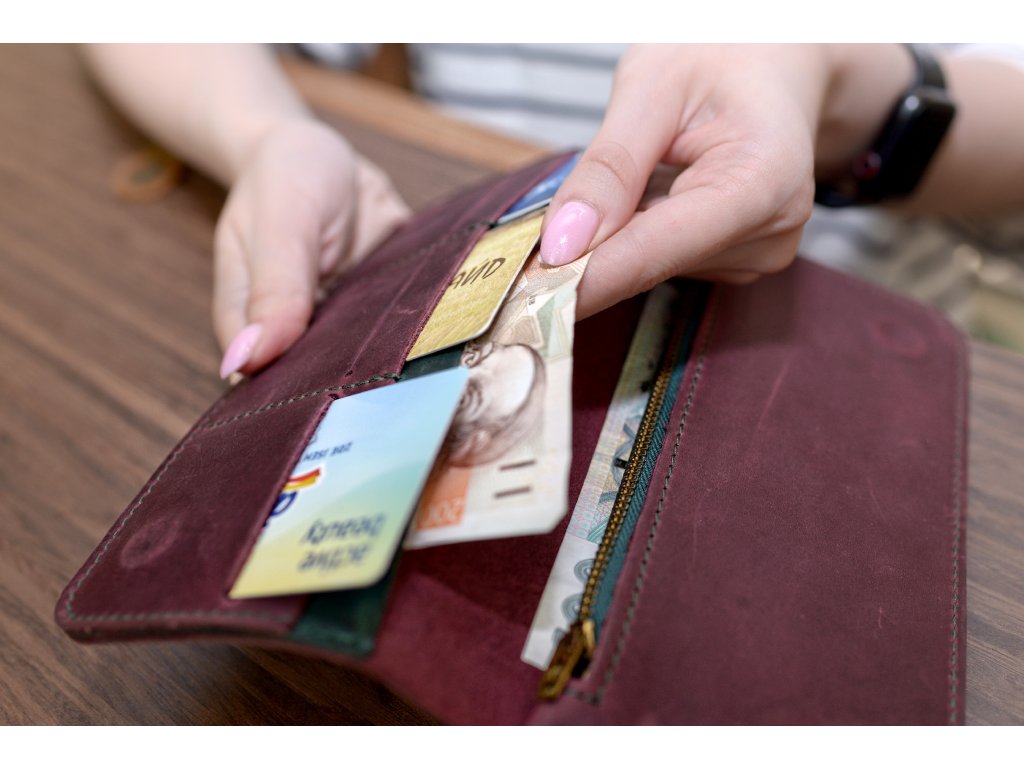 Promyšlené rozvržení kapes umožňuje pohodlně uspořádat bankovky, karty a mince. - Design: