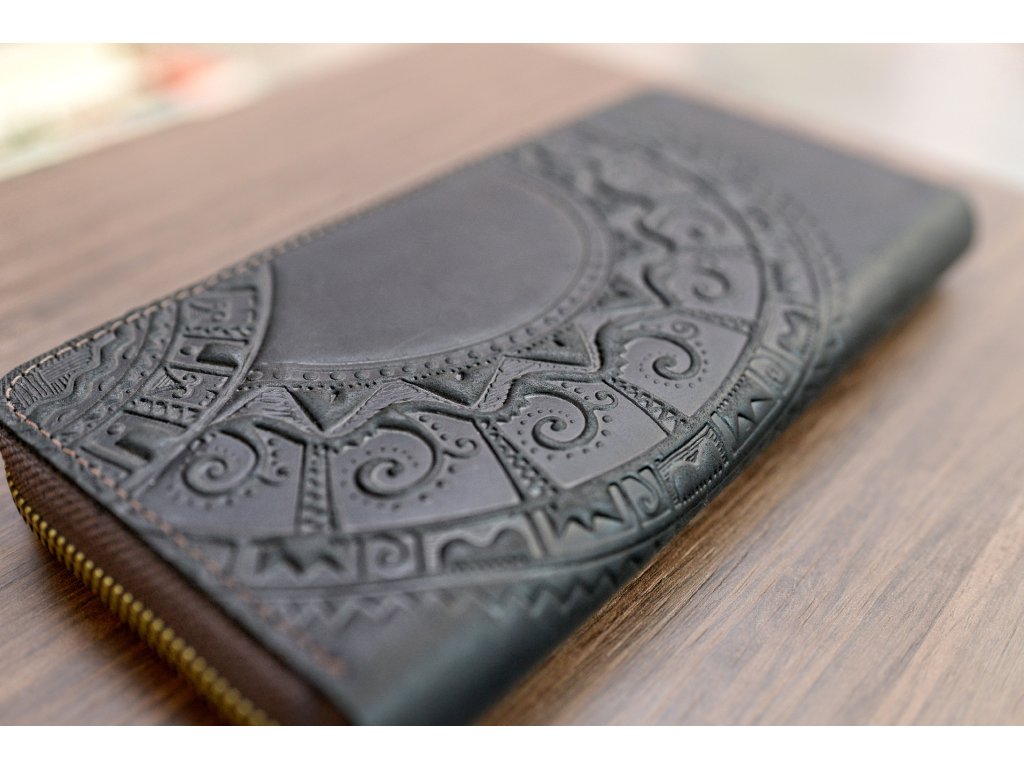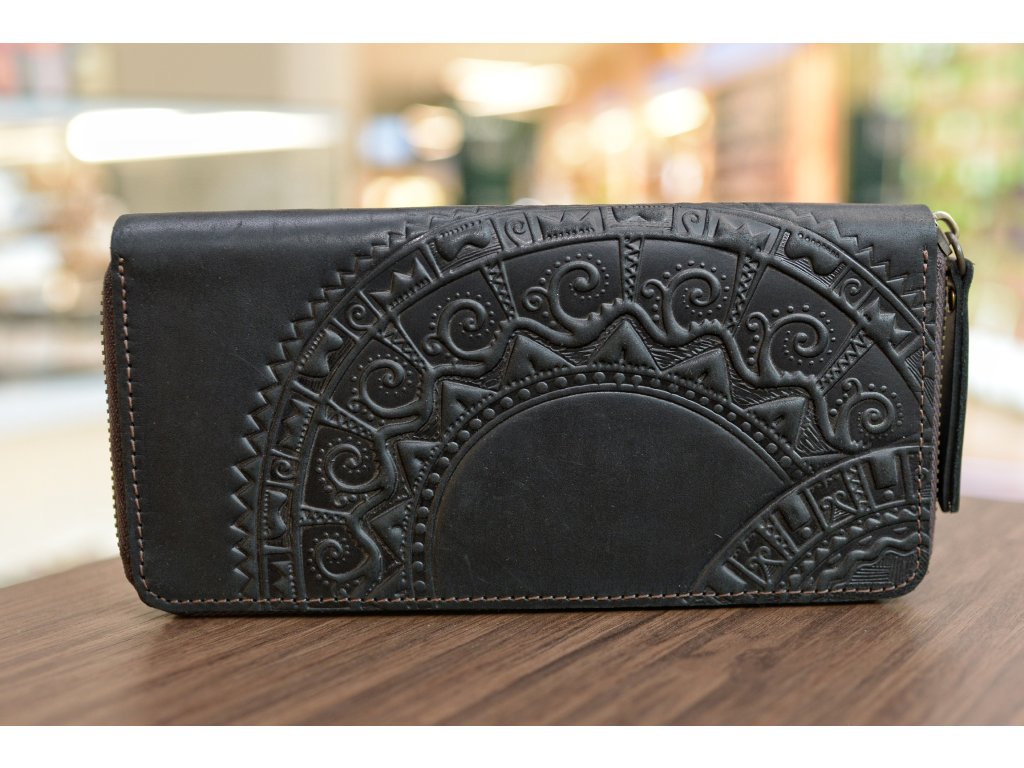 Peněženka velka na zip s reliéfem "HUCUL"(bez popruhů). Kůže "Crazy Horse" černá
