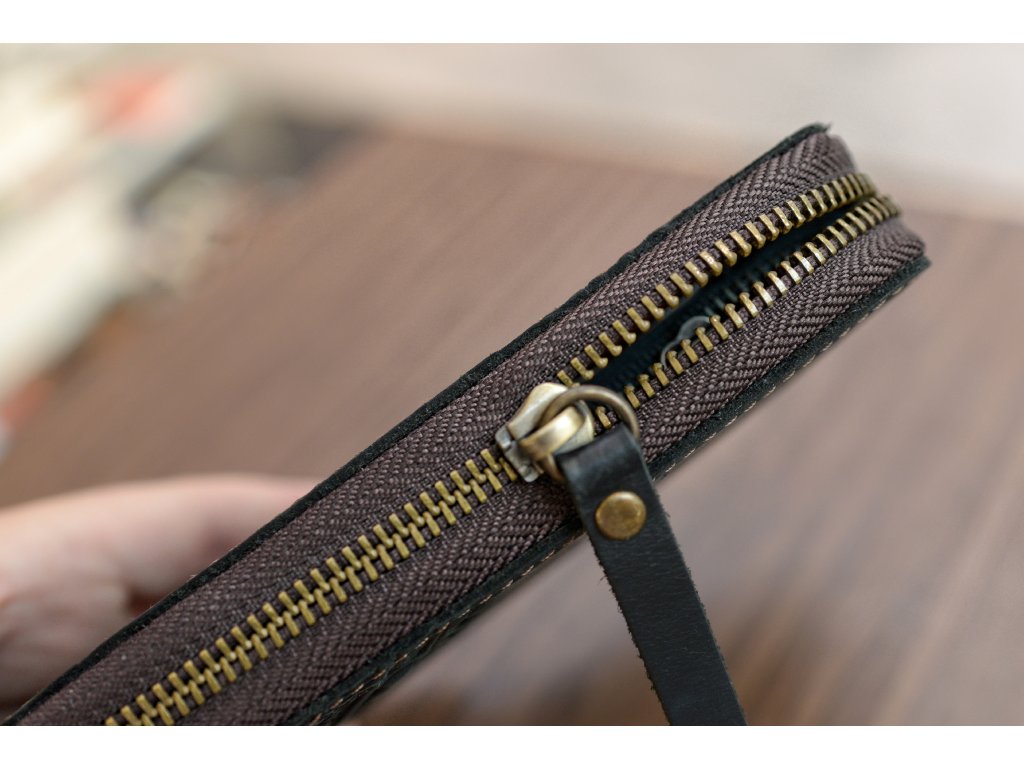 Stylová dámská peněženka/psaníčko vyrobená z přírodní voskované kůže Crazy Horse a luxusní italské kozí kůže. Praktické rozměry 21 × 10 cm, 4 přihrádky na bankovky či telefon, 8 kapes na karty a samostatná kapsa na mince. Uzavíratelné kvalitním zipem YKK. Ruční výroba zaručuje jedinečnost každého kusu.