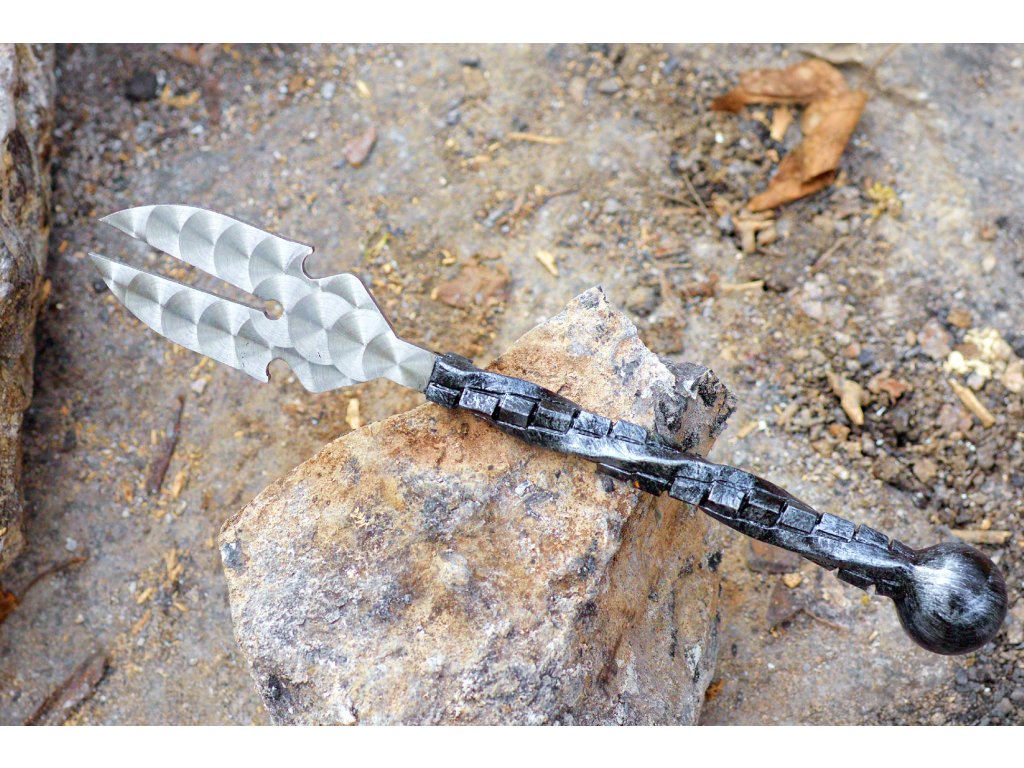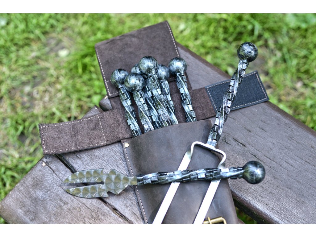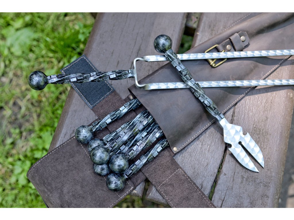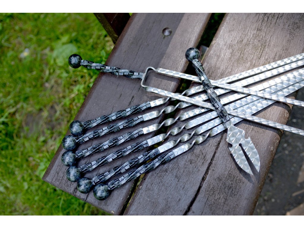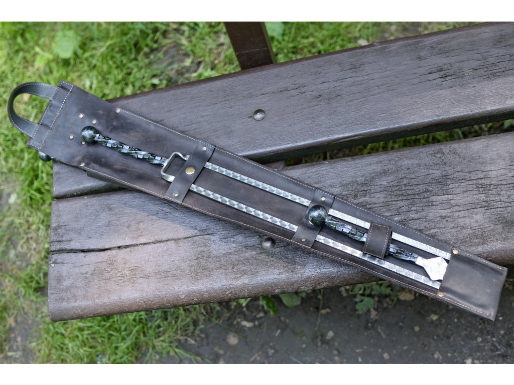 Sada špízů "Kované". (6 špízů, dvojitý špíz, vidlička na maso a obal)