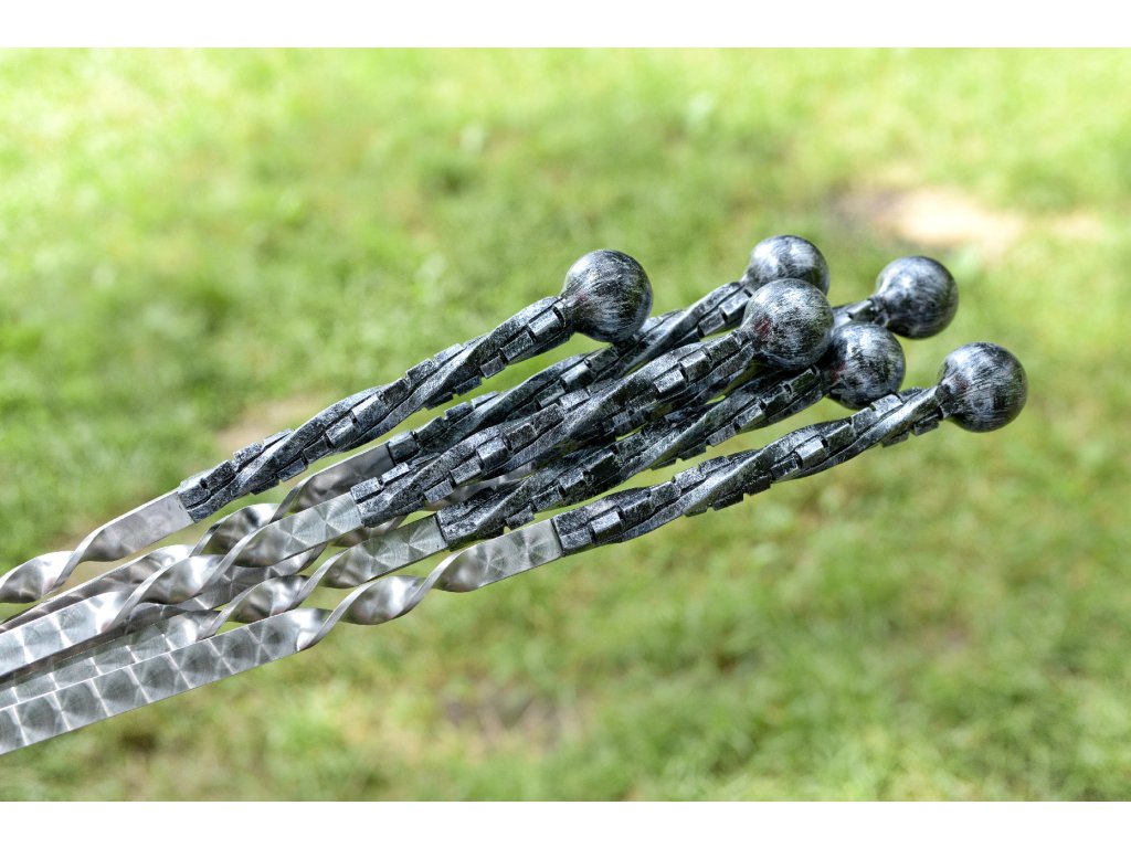 Celý set je vyroben v jednom stylu. Může být dokonalým dárkem pro vaše blízké a skvěle doplní vaše posezení u grilování. Naše špízy spojují eleganci a funkčnost. Jsou ideální pro každého milovníka šašliků, kteří chtějí povýšit přípravu pokrmů na ohni na zcela novou úroveň!