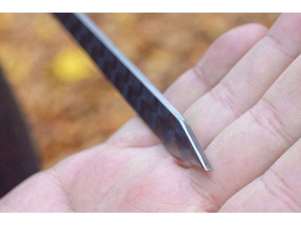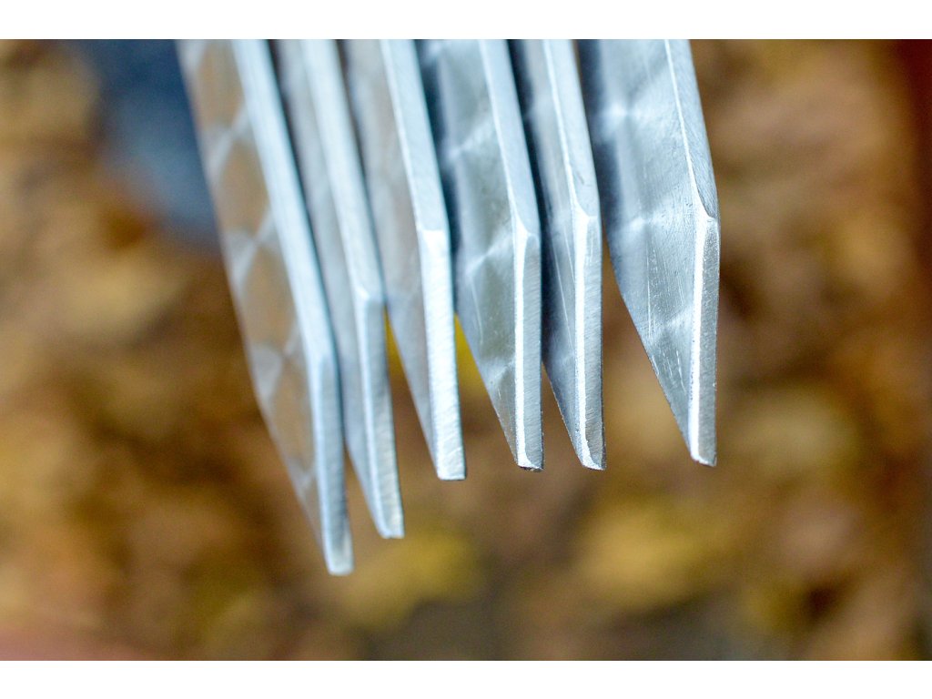 - Leštění: Povrch čepele je speciálně leštěný, což pomáhá skrýt drobné škrábance vzniklé při používání.