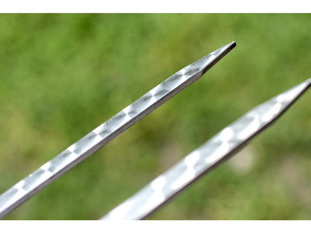- Praktická čepel: Speciální ostření usnadňuje navlékání masa nebo zeleniny na špíz a zajišťuje bezpečné použití.