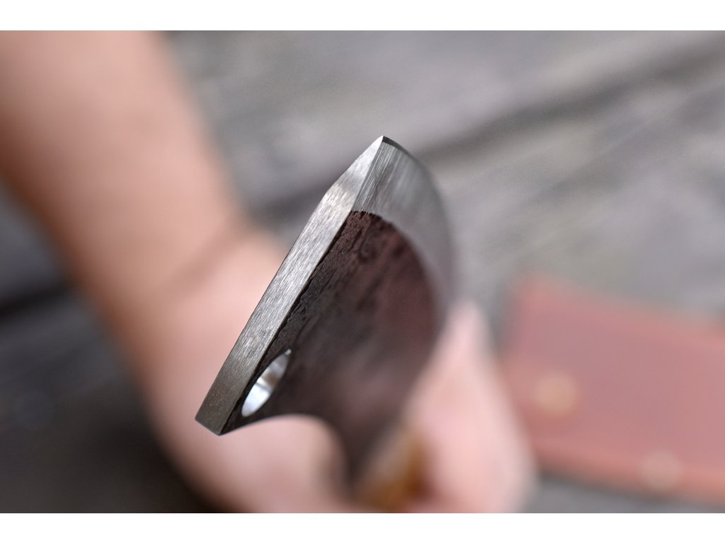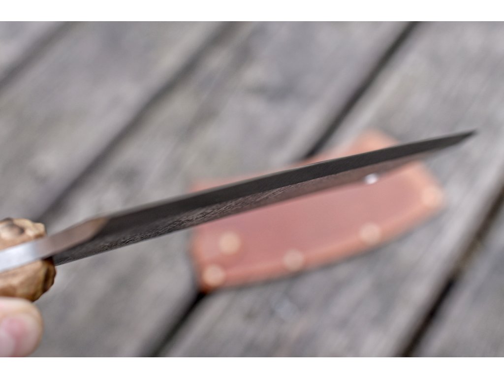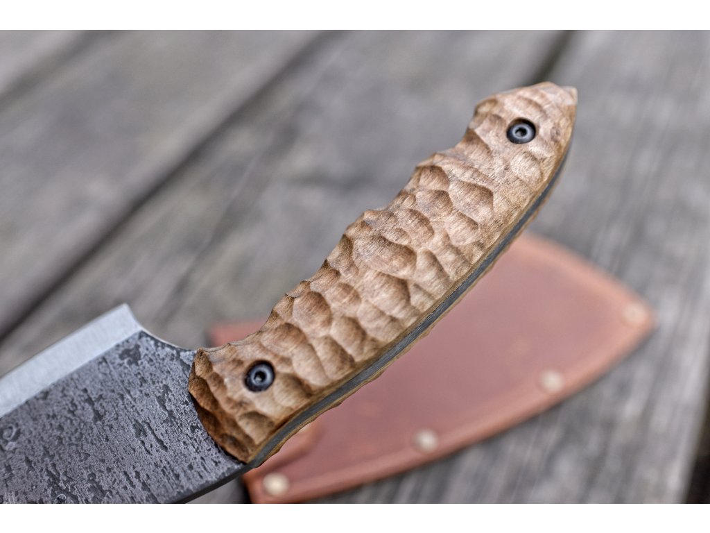 Materiál čepele: ocel 65Г (ekvivalenty: Velká Británie - 080A67, Německo - 66Mn4, Ck67, Čína - 65Mn, Polsko - 65G) s viditelnými stopami kování, které přidávají jedinečný styl a výrazný vzhled. Tato ocel je extrémně pevná, odolná vůči zátěži a opotřebení, což je ideální pro sekání masa, chrupavek a kostí. Tato ocel vyžaduje pravidelnou péči a pozornost, aby si zachovala své vlastnosti.