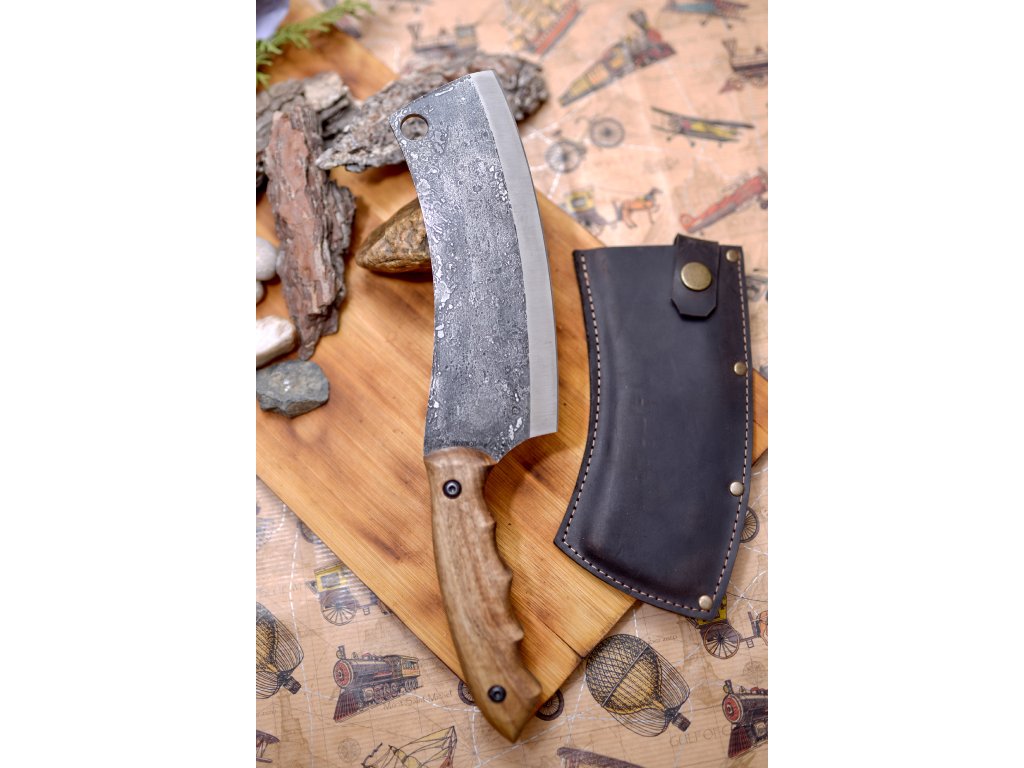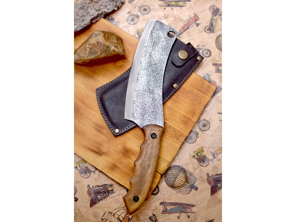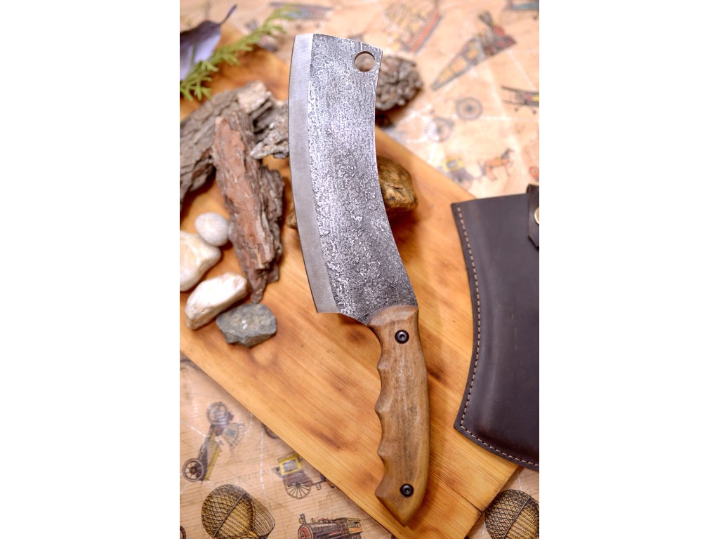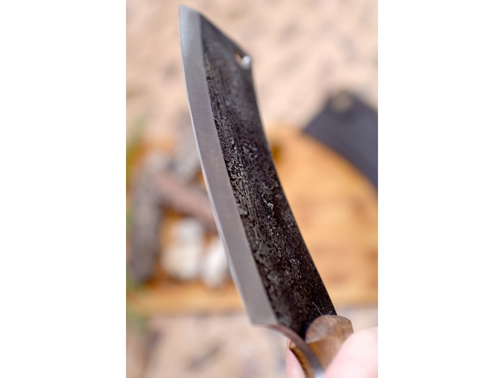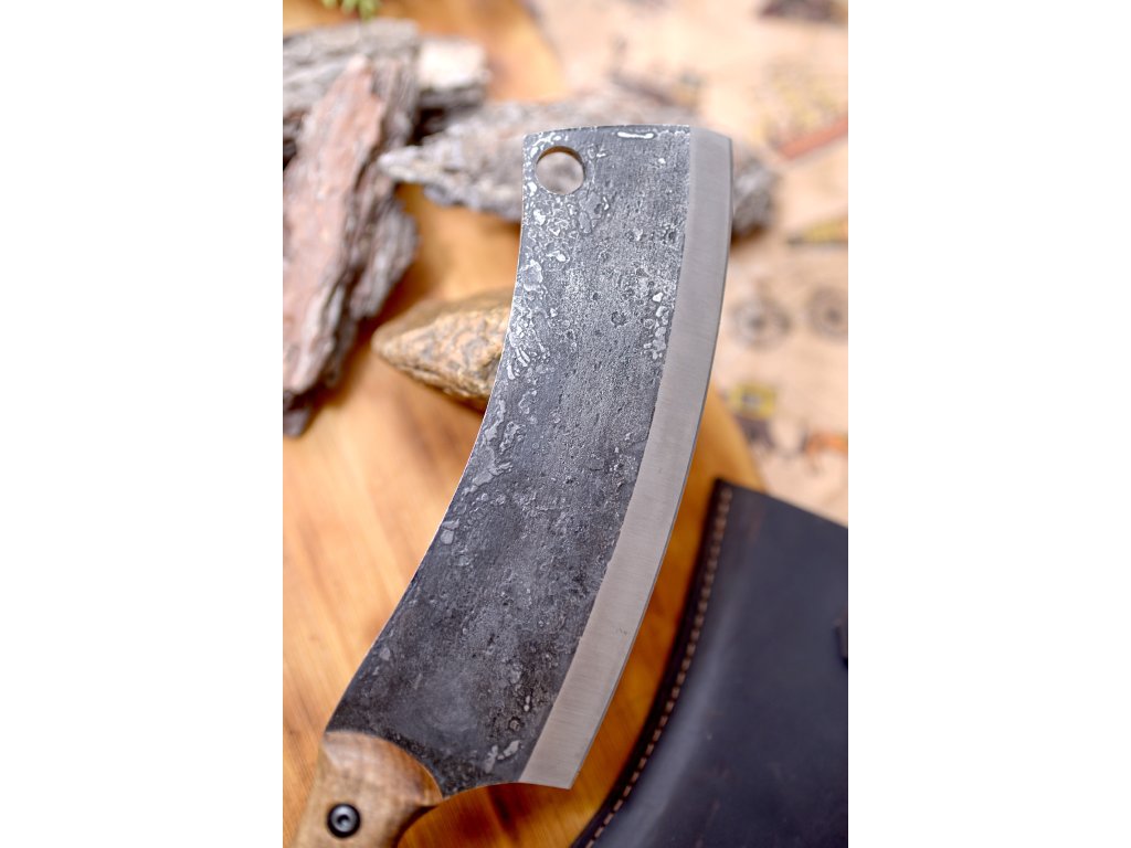 Materiál čepele: ocel 65Г (ekvivalenty: Velká Británie - 080A67, Německo - 66Mn4, Ck67, Čína - 65Mn, Polsko - 65G) s viditelnými stopami kování, které přidávají jedinečný styl a výrazný vzhled. Tato ocel je extrémně pevná, odolná vůči zátěži a opotřebení, což je ideální pro sekání masa, chrupavek a kostí. Tato ocel vyžaduje pravidelnou péči a pozornost, aby si zachovala své vlastnosti.