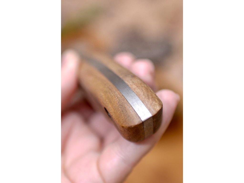 • Konstrukce: Celokovový sekáček s rukojetí z ořechového dřeva, připevněnou dvěma nýty pro maximální pevnost a pohodlí při používání.