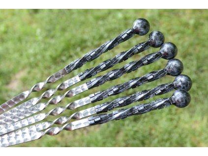 Luxusní nerezové špízy s bronzovými detaily Špízy z nerezové oceli AISI 430 s dřevěnou rukojetí z dubu a dekorativními prvky z cínovaného bronzu jsou ideální volbou pro přípravu...
