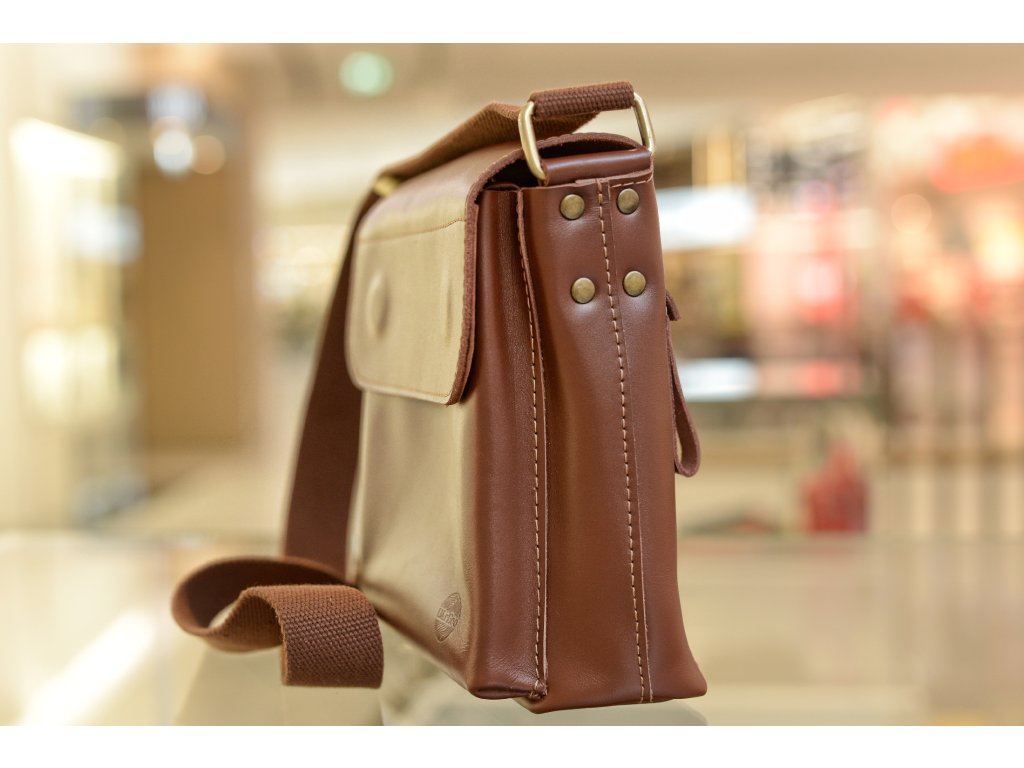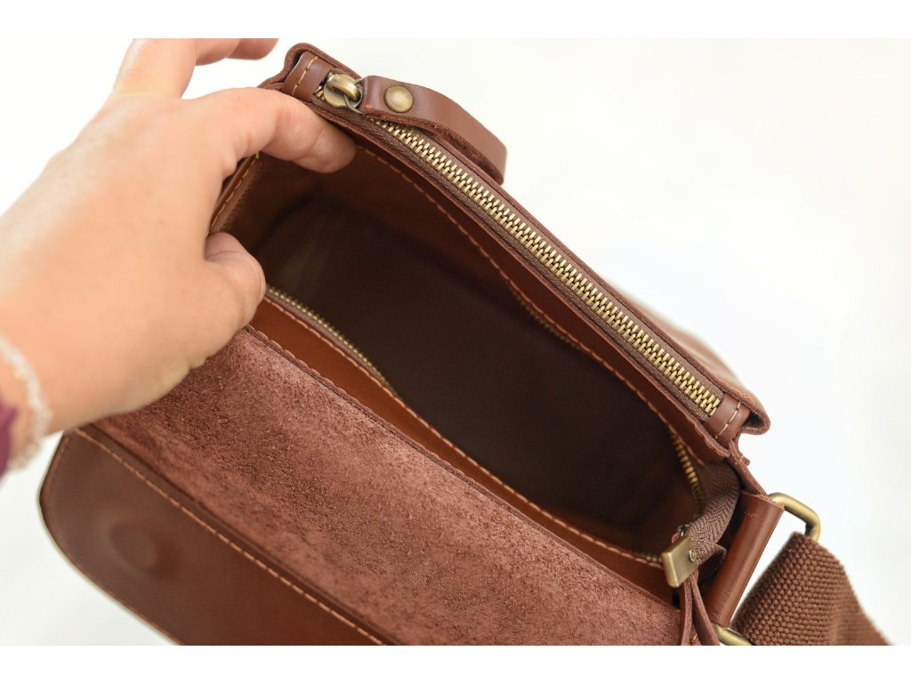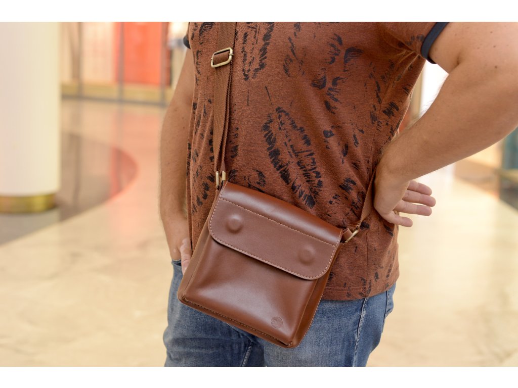 Praktická pánská taška z přírodní kůže. Kompaktní rozměry 20 × 20 × 6 cm pojmou všechny nezbytnosti – telefon, peněženku i dokumenty. Nastavitelný popruh a promyšlené kapsy zaručují pohodlí při každodenním nošení.